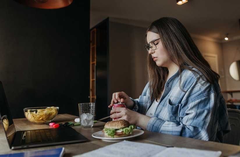 - Исключите фастфуд, джанк-фуд (чипсы, батончики, сухарики и т.п.) и сладкие газированные напитки. В такой пище много сахара, соли, вредной химии, она калорийна, однако ей нельзя насытиться, она лишь разжигает аппетит. После такого перекуса уровень сахара в крови резко повышается, а затем стремительно падает и снова хочется есть.