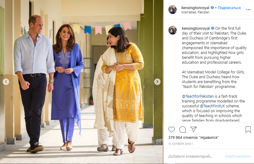 А вот во время зарубежных визитов Кейт старается надевать одежду местных дизайнеров. Например, во время тура по Пакистану ее можно было увидеть в нарядах Maher Khan.