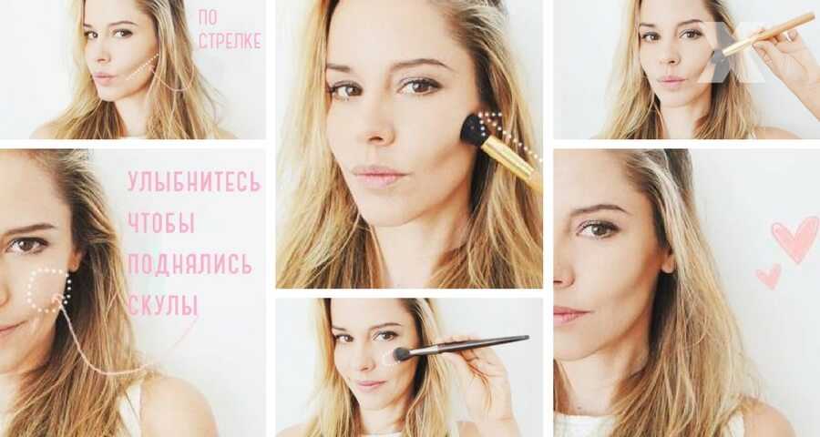 Совет! Все линии в макияже должны быть восходящими: при коррекции скул, растушевке теней, румян. В этом случае лицо выглядит более подтянутым и стройным.