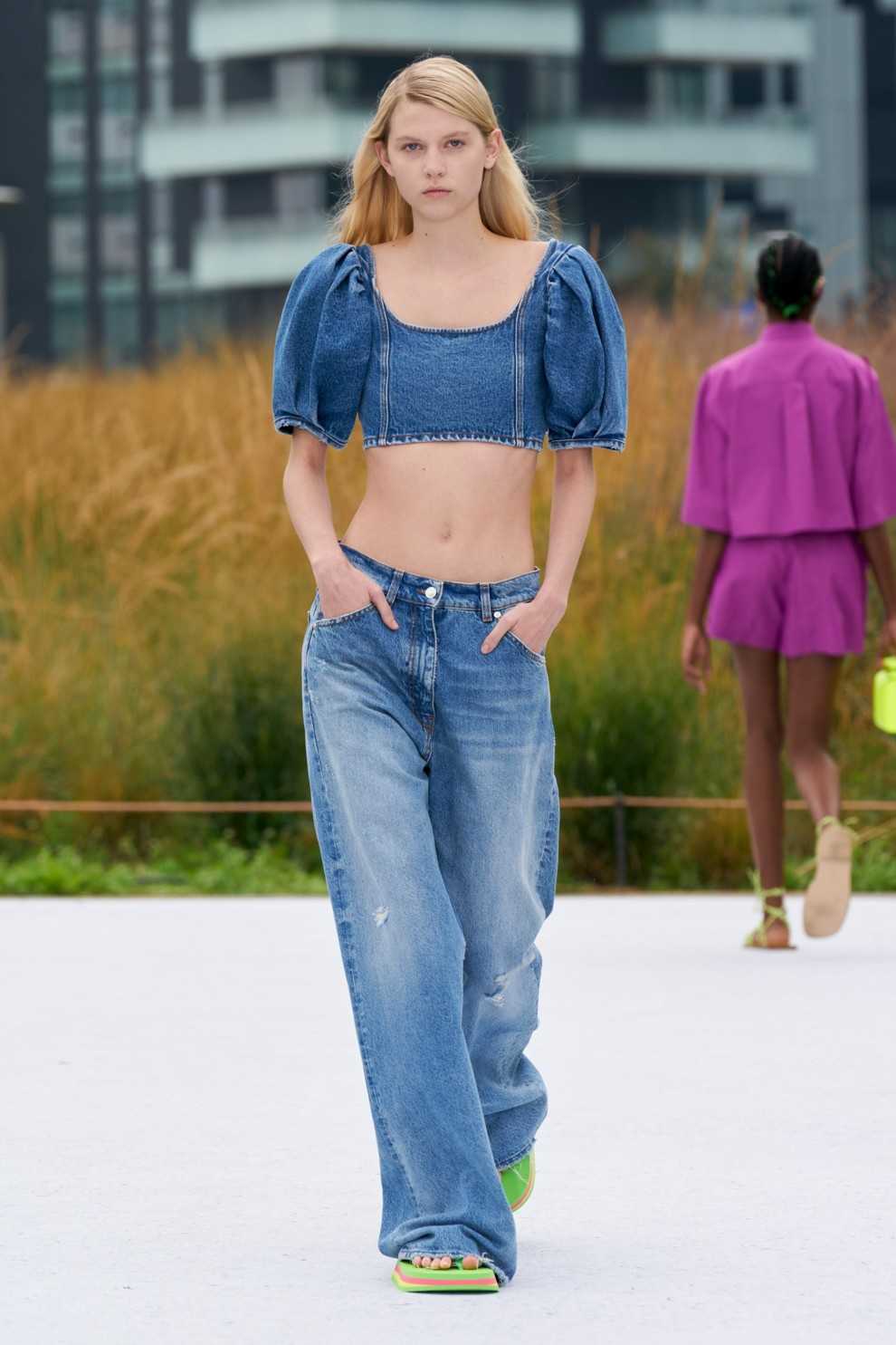 По фото модных показов женские джинсы сезона весна-лето 2022 все чаще имеют высокую посадку, но именитые стилисты утверждают, что заниженная талия еще вернется на подмостки. Джинсовые брюки с низкой посадкой предъявляют высокие требования к своим обладательницам относительно строения фигуры и толщины талии.