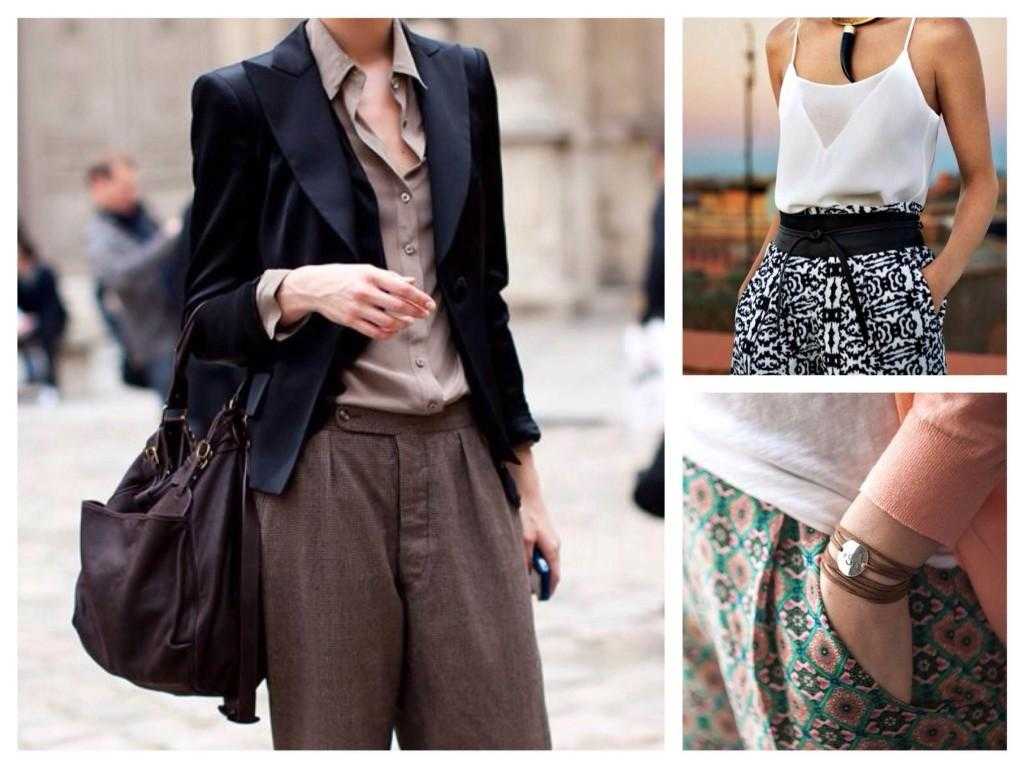 Подчеркиваем талию с помощью брюк прямого кроя либо тех, которые идут от колена клёшем. Причем высоким дамам подойдут очень широкие брюки (летние брюки палаццо), которые подчеркнут красоту их ног и их длину, а низким и женщинам среднего роста лучше выбирать не слишком широкие модели. Варианты с заниженной талией либо те, которые сужаются внизу — не для вас, старайтесь их избегать.