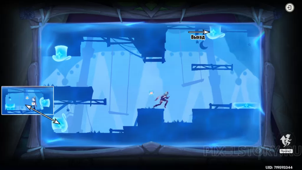 Внутри будет головоломка со шляпами. На первый взгляд она может показаться непонятной, но это только первое впечатление. Прыгайте сразу в шляпу это перенесет вас во вторую зону.