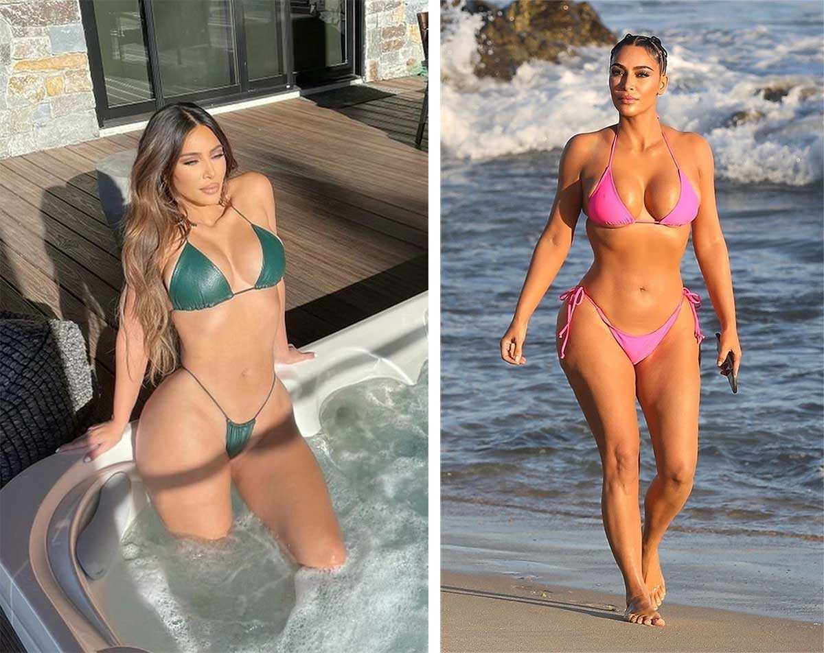 Фото Ким Кардашьян в купальнике без фотошопа