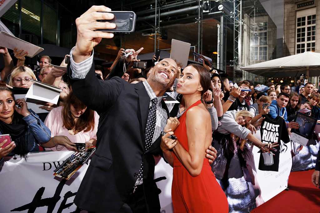 Дуэйн Джонсон, Ирина Шейк на европейской премьере фильма «Геракл» в Берлине, 21 августа 2014 г. На шоу Moschino Весна/Лето 2017 в рамках Миланской Недели моды, 22 сентября 2016 г.