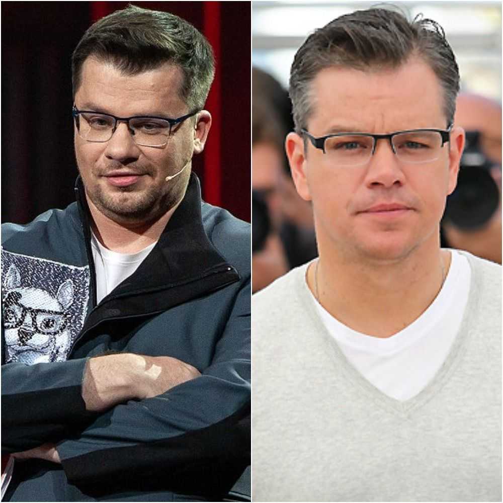 Начиная с КВН Харламова называли человеком с лицом Мэтта Деймона. Эти две знаменитости очень похожи друг на друга не только внешне, но у них еще и похожее тонкое чувство юмора в обычной жизни. Разница в возрасте у них — в 11 лет, хотя Гарик выглядит старше.
