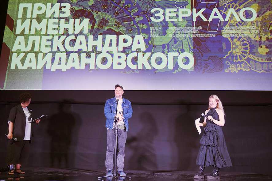 Спецприз программы «Переплетения» за исследование границ кинематографа, искусства и дизайна мастер перфоманса и эпатажного поведения Данила Куликов вручил Глебу Кузнецову и Софье Горленко за документальный фильм «Тонкой нитью» (ребята не присутствовали в зале, но были на видеосвязи).