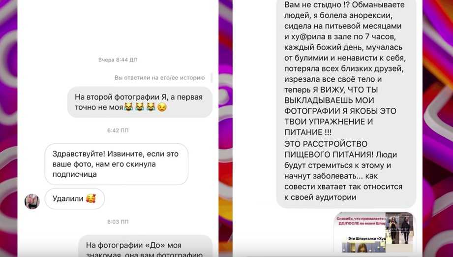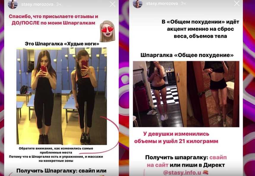 Как мы видим, Стася просто играет на нашем желании быть стройными и идеализации женской красоты. Более того, она транслирует, что к фигуре, как при РПП, нужно стремиться. Но обычно когда мы смотрим инстаграмчик, критическое мышление отключается.