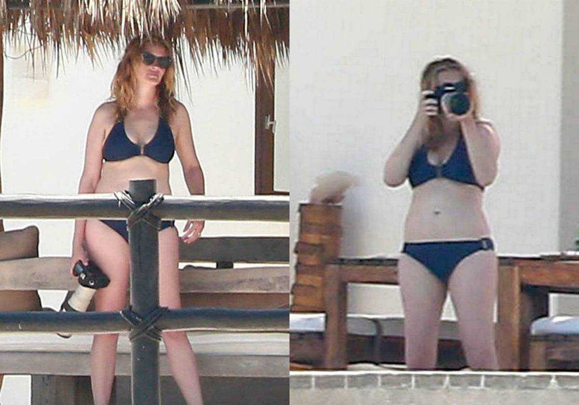 После того, как звезда стала мамой в 2007 году, с ее фигурой стали происходить непонятные метаморфозы. То она появится с осиной талией на вручении премии, то щеголяет по пляжу с явно набранными в районе живота лишними килограммами.