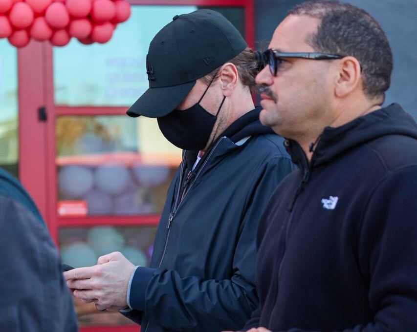 И если первый был в хорошем настроении и широко улыбался, то второй надвинул кепку на глаза и скрывал лицо под маской.