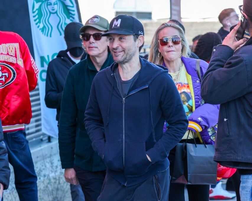 На финал НФЛ прилетели лучшие друзья – актёры Тоби Магуайр и Леонардо Ди Каприо.