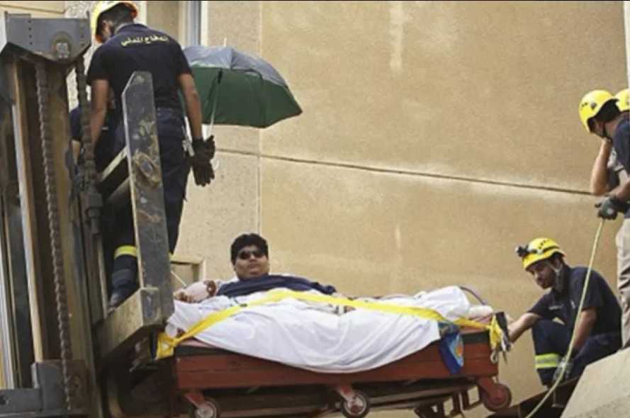Халид родился в 1991 г., а в 2013 г. его доставили в больницу на личном самолете короля саудитов в специальную клинику. Правитель лично оплатил лечение парня, которому сделали операцию по удалению 80 кг жира. В клинике молодой человек похудел на 320 кг и постепенно начал двигать ногами.