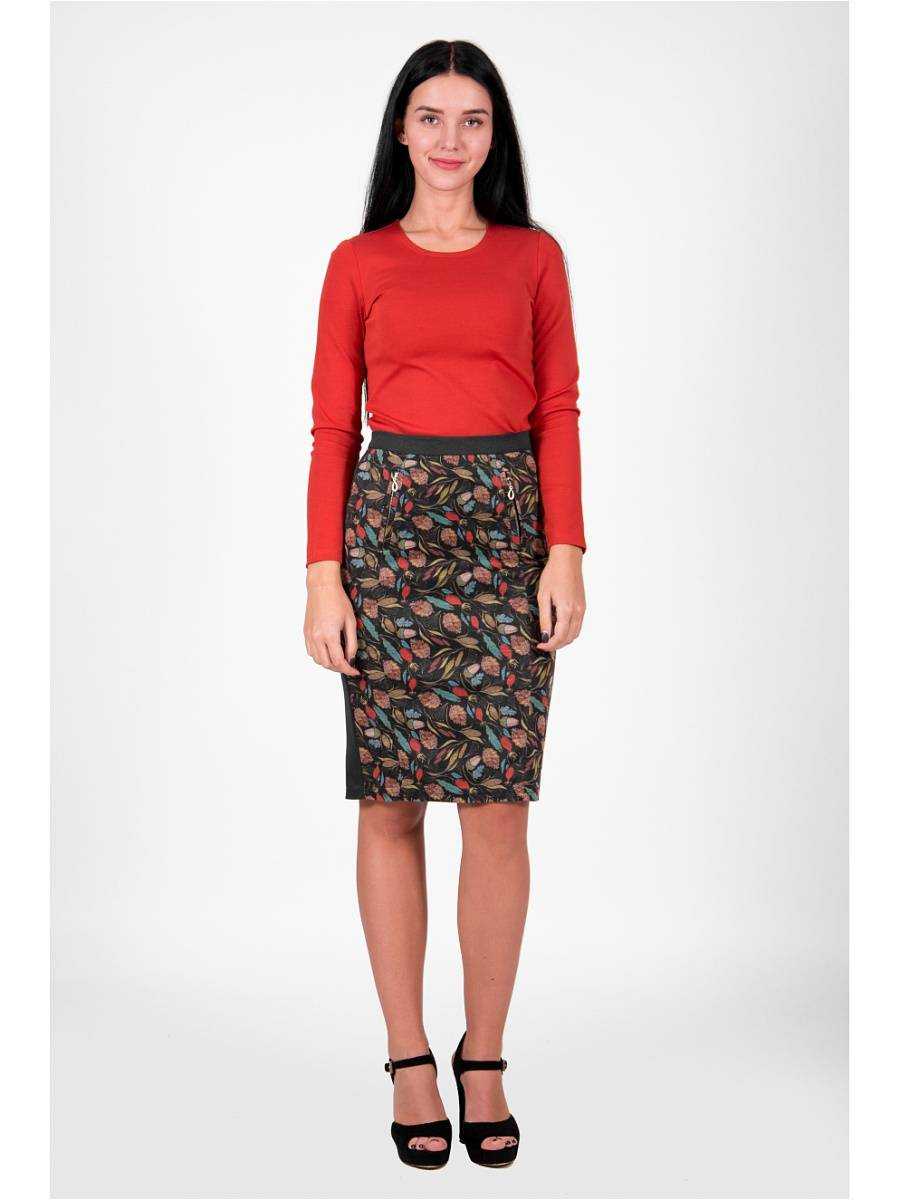 Юбка с цветочным или геометрическим принтом нуждается в более спокойном обрамлении: например, серой или черной блузе, свитшоте без рисунка или оверсайз-свитере. Поскольку юбка в таком ансамбле играет главную роль, то все остальное в образе должно быть нейтральным: спокойная обувь базовых оттенков, минимум деталей, сдержанные аксессуары. Юбка-карандаш с геометрическими принтами
