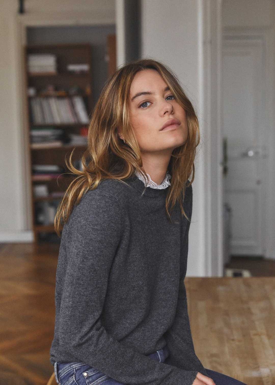 Блузка с кружевным воротником-стойкой и тонкий кашемировый свитер — два отличных базовых слоя Топы-сорочки, которые выглядывают из-под пуловеров и кардиганов — еще один классический тонкий слой