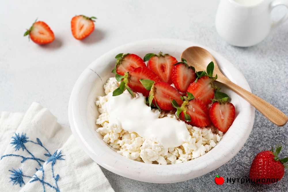 - Завтрак – творог с ягодами (клубника, малина), зеленый чай.
